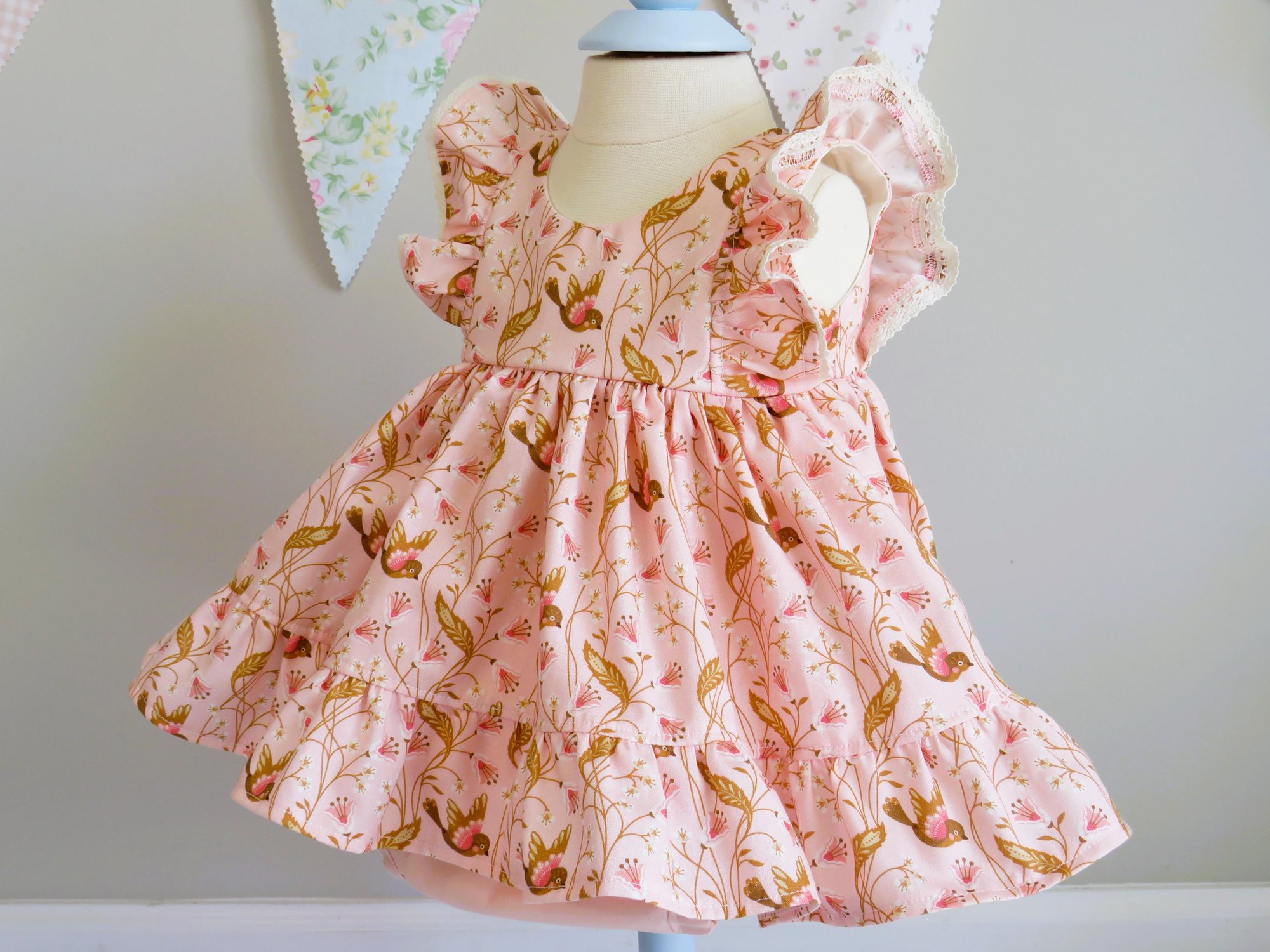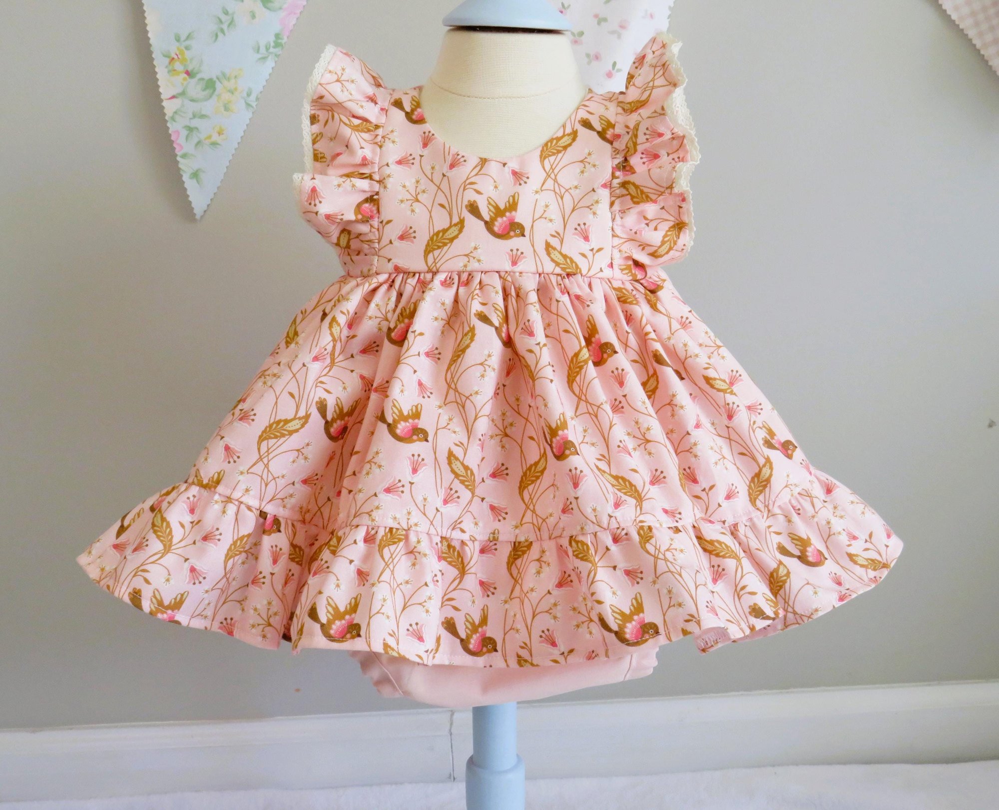 Baby Dress Set in Blush Organic Cotton Birdie, Vintage Vibe